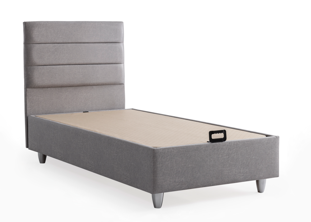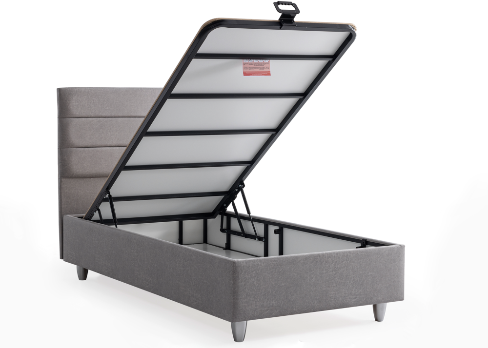 Единично тапицирано легло Duru е модулен, напълно окомплектован вариант, който включва капитонирана табла и капитонирана основа с вградена повдигаща подматрачна система с газови амортисьори, осигуряваща удобно място за съхранение на спално бельо, възглавници, одеяла и други вещи.