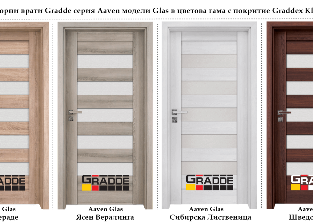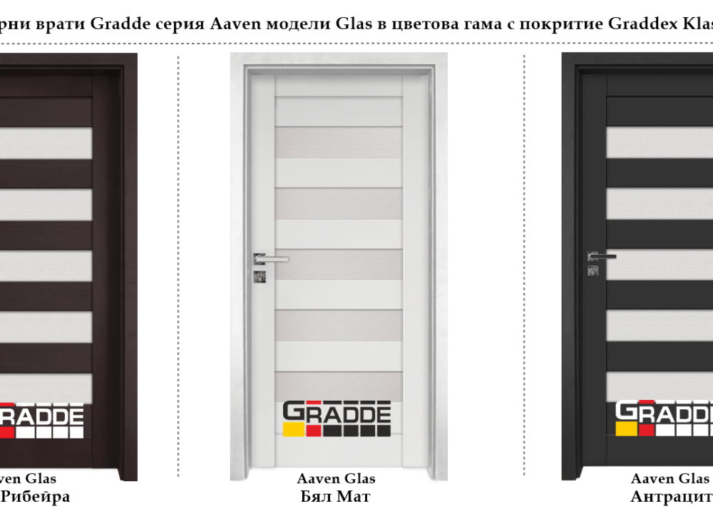 Всички модели интериорни врати Gradde от серия Aaven се предлагат с два вида покритие, в красива цветова гама.