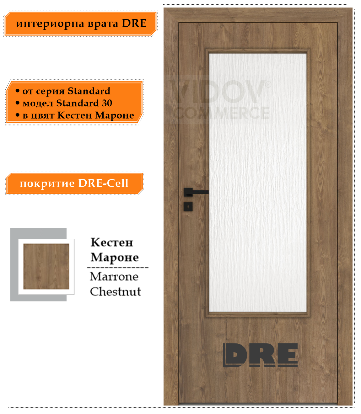 Безплатна доставка на интериорна врата DRE Standard 30 Кестен Мароне от магазин Vidov Commerce.