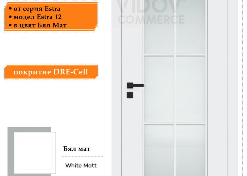 Магазин за врати Vidov Commerce, предлагаме най-големите отстъпки при поръчка на голям брой интериорни врати DRE Doors. За строителни фирми, хотели, кооперации, за юридически лица или физическо лице, ще изготвим най-изгодната оферта.