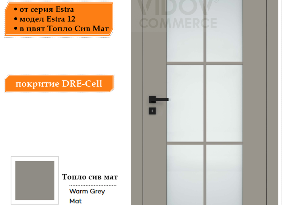 Безплатна доставка на интериорна врата Estra 12 Топло Сив Мат от магазин Vidov Commerce.