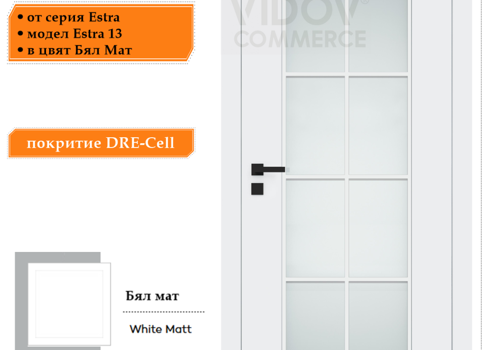 Магазин за врати Vidov Commerce, предлагаме най-големите отстъпки при поръчка на голям брой интериорни врати DRE Doors. За строителни фирми, хотели, кооперации, за юридически лица или физическо лице, ще изготвим най-изгодната оферта.