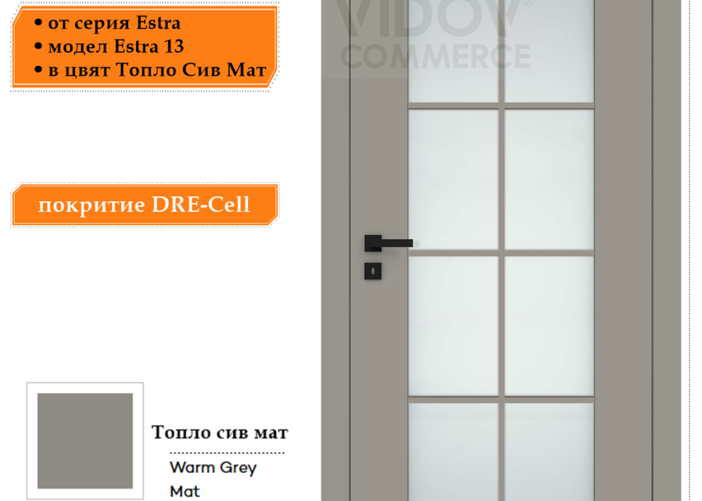 Интериорна врата Estra 13 Топло Сив Мат от магазин за врати Vidov Commerce – на изгодни цени с включена безплатна доставка!
