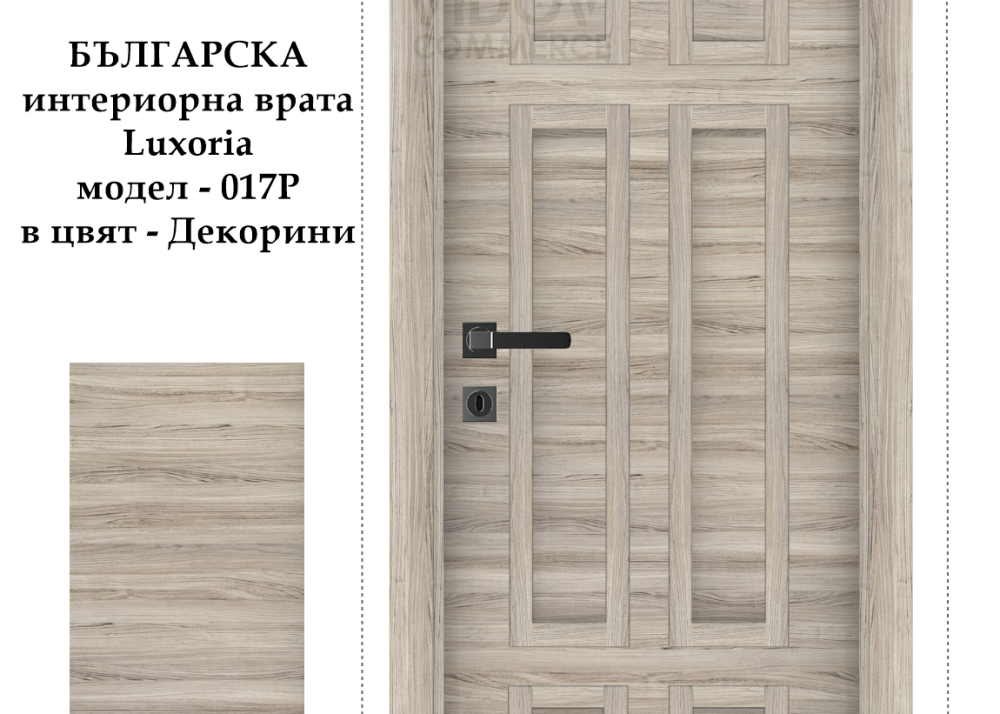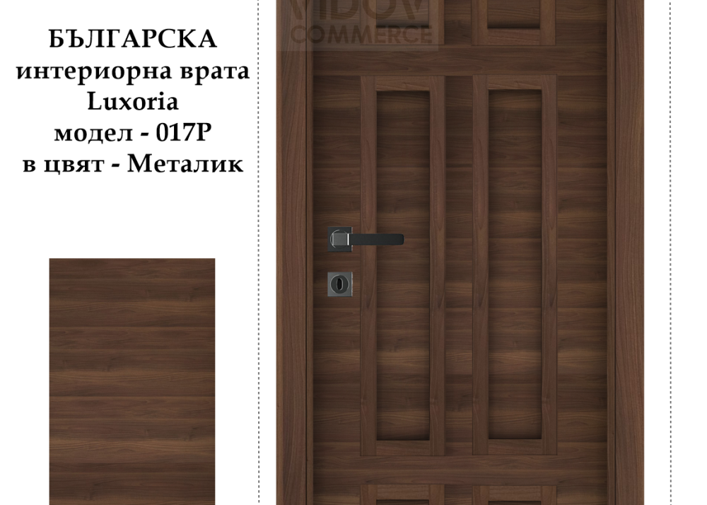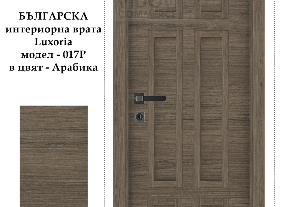 Българска интериорна врата Luxoria, модел 017P в комплект с регулируема каса. Изработва се по индивидуални размери, по избор в 12 цвята.