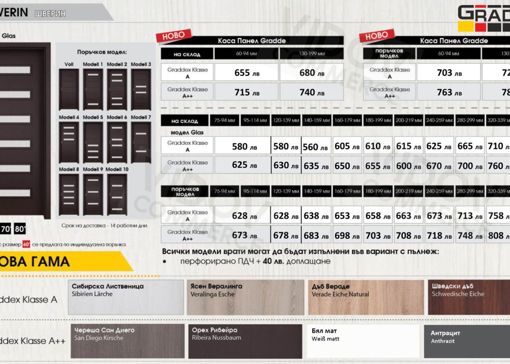 Забележка ! В посочените цени НЕ СА ВКЛЮЧЕНИ – дръжки ! Поради огромния избор от различни модели дръжки Gradde, всеки клиент има възможността да избере предпочитания модел дръжки и брави.