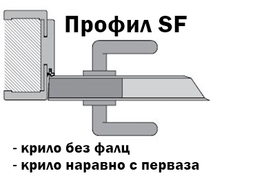 Крило – безфалцово в профил SF, устойчив MDF материал, конструкция от масивна дървесина рамка, облицовъчни листове от HDF със стандартен пълнеж „Пчелна пита”.