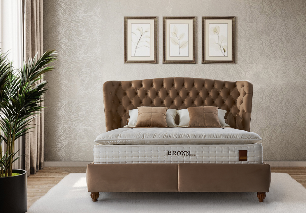 Brown е снабден с луксозна дамаска от вискозен плат Viscose fabric и комфортен прошит топер.