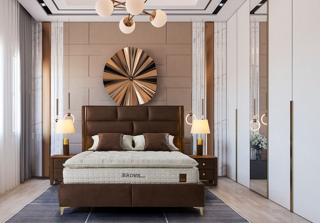 Матрак Brown е от висок клас с вложени 3 вида Pocket пружини в него, снабден е с луксозен прошит топер и дизайнерска дамаска Viscose fabric. Brown е подходящ за партньори с голяма разлика в килограмите. Притежава добра вентилация, той е антиалергичен, антиакарен, предлага добра мекота, комфорт и ортопедични свойства.