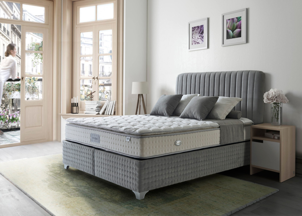 Качествен двулицев пружинен Bonnel матрак, снабден с дизайнерска капитонирана дамаска и прошит топер.