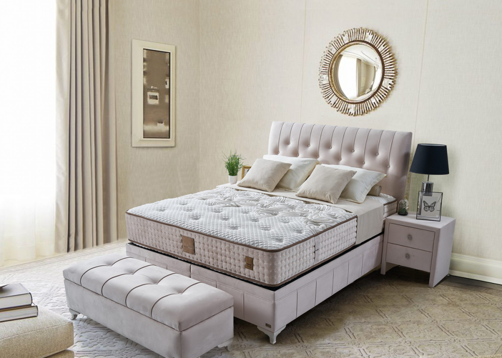 Комфортен пружинен Bonnel матрак, снабден с луксозна капитонирана плетена дамаска.