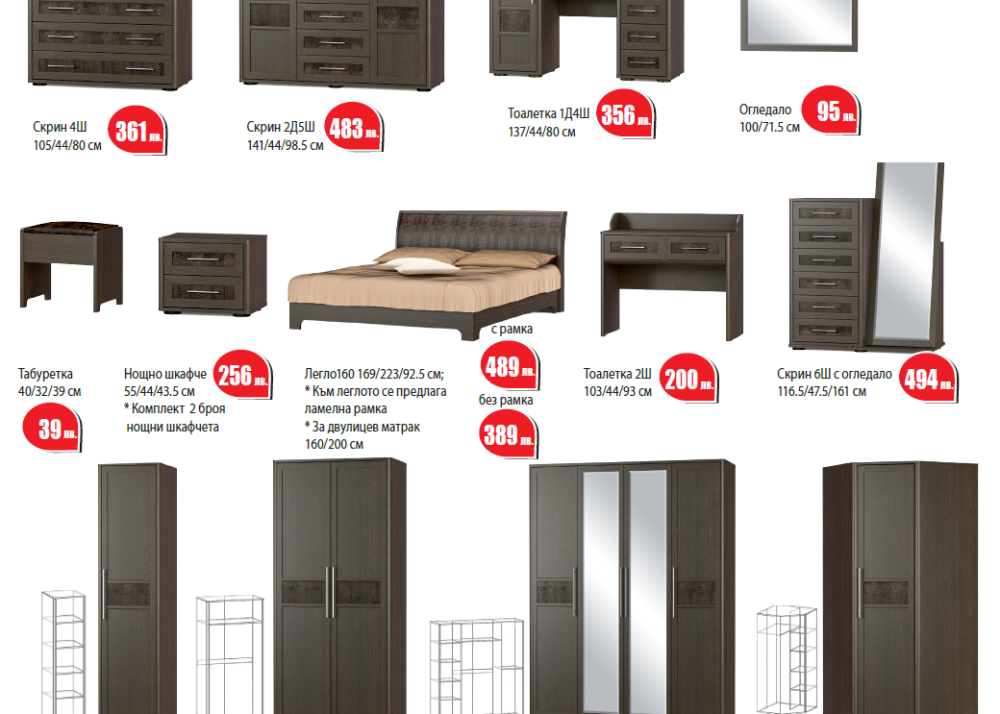 - Размери на спалнята: 169/223/92.5см. без рамка – 389лв.