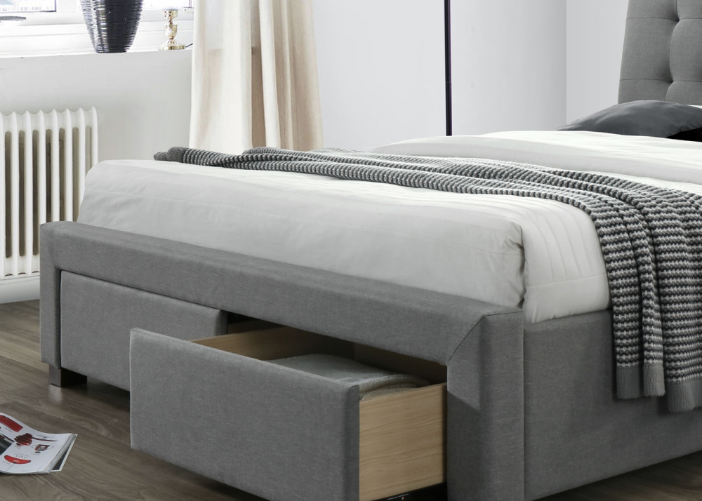 Тапицирана спалня Percy е функционално спално легло, с капитонирана табла и основа с 2 чекмеджета. Конструкцията е здрава и устойчива, изработва се от масивно дърво. Тапицирано легло Percy е снабдено с дървена подматрачна рамка и плъзгащи механизми на чекмеджетата.