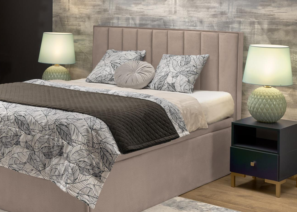 Тапицирано спално легло Asento светло бежово – здравина, стил и практичност в едно решение