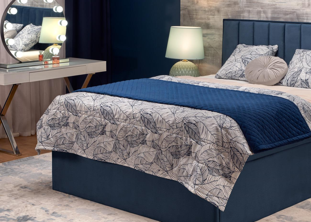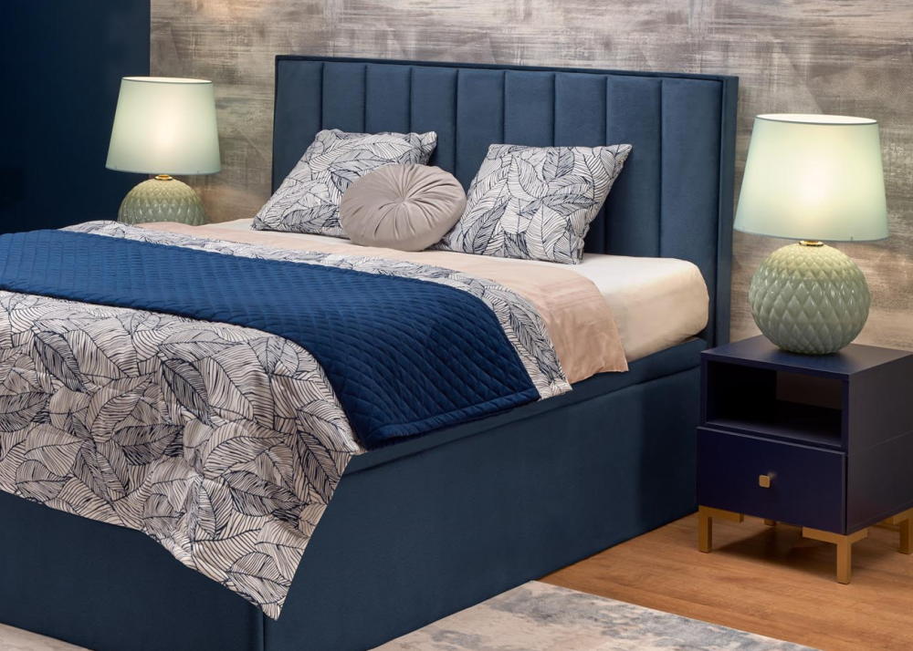 Тапицирано спално легло Asento тъмносиньо – здравина, стил и практичност в едно решение