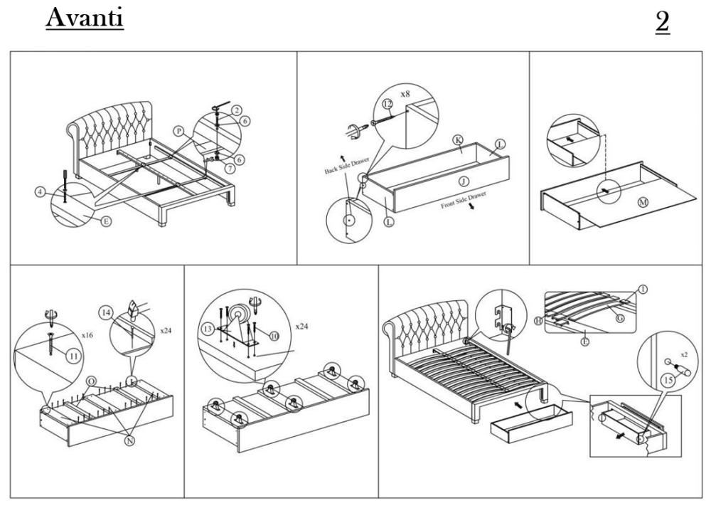 Моделът разполага с едно голямо чекмедже с колелца, подходящо за съхранение, и е снабден с дървена подматрачна рамка, включена в комплекта. Легло Avanti съчетава естетика и функционалност – идеално за всяка модерна спалня.
