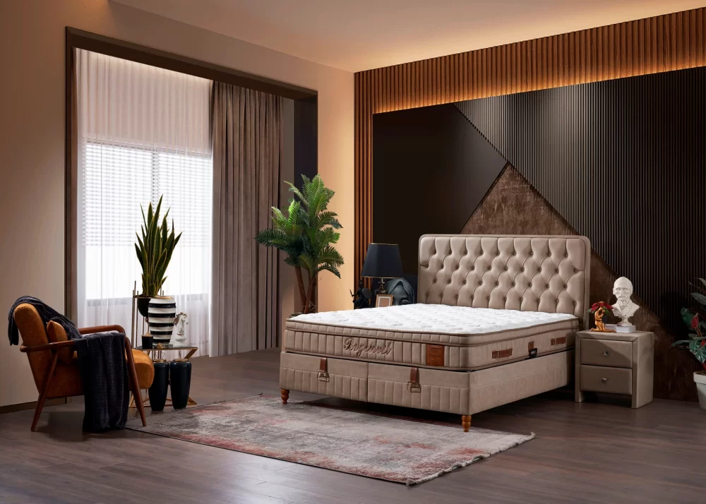 - Спални легла Türkmen представляват модулна конструкция от тапицирани бази / основи с табли.
