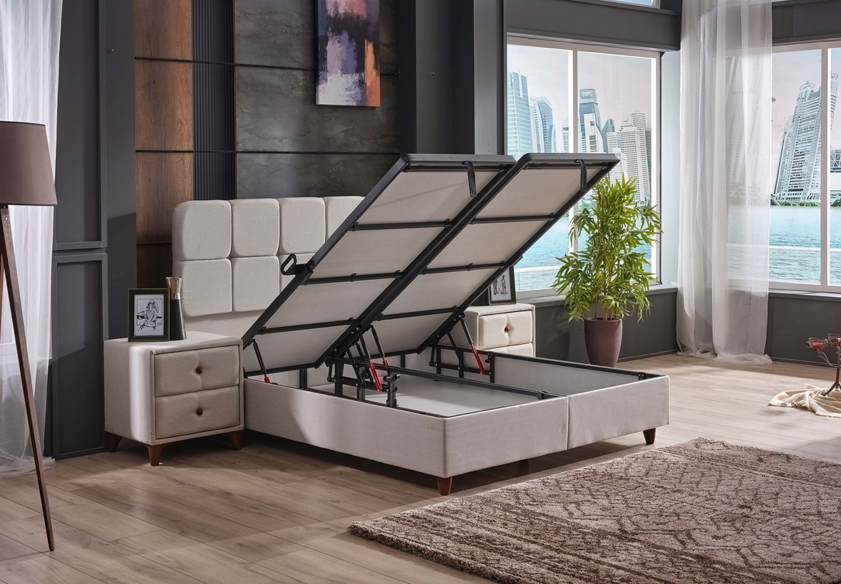 Подробни характеристики за тапицирано легло Begonya Сив Крем и матрак Begonya