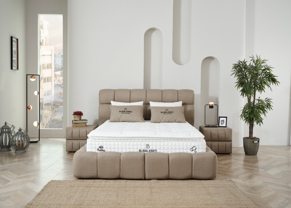 Тапицираното легло Bubble впечатлява с луксозната си визия и отличителен цвят Бежов лешник, придаващ изискан акцент на всяка модерна спалня. Моделът е оборудван с повдигаща се подматрачна рамка с газови амортисьори, която осигурява просторно и практично място за съхранение на спално бельо, завивки и други вещи от ежедневието. Предлага се в три стилни цвята - Бежов лешник, Бял/крем и Графит, без допълнително оскъпяване - за да съчетае идеално стил и функционалност в интериора на вашия дом.