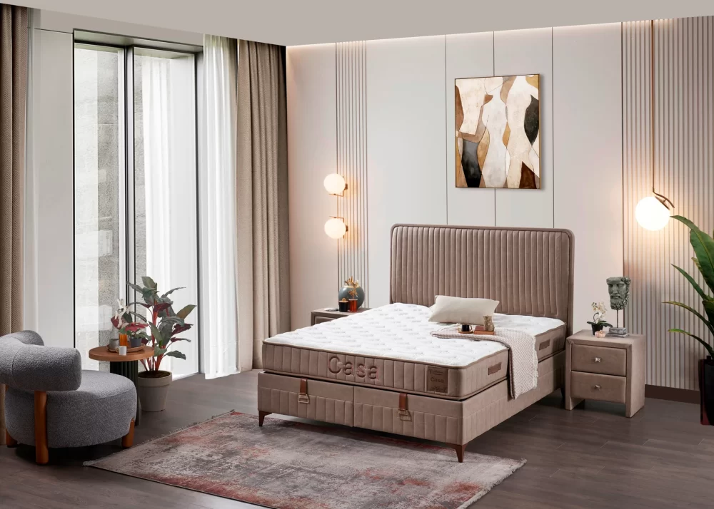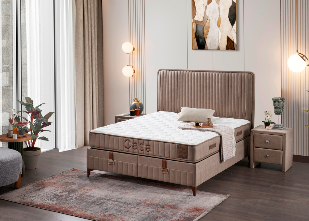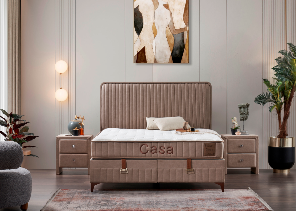 Тапицирано легло Casa е модулно, готов окомплектован вариант, който се състои се от капитонирана табла и капитонирана основа с повдигаща подматрачна система.