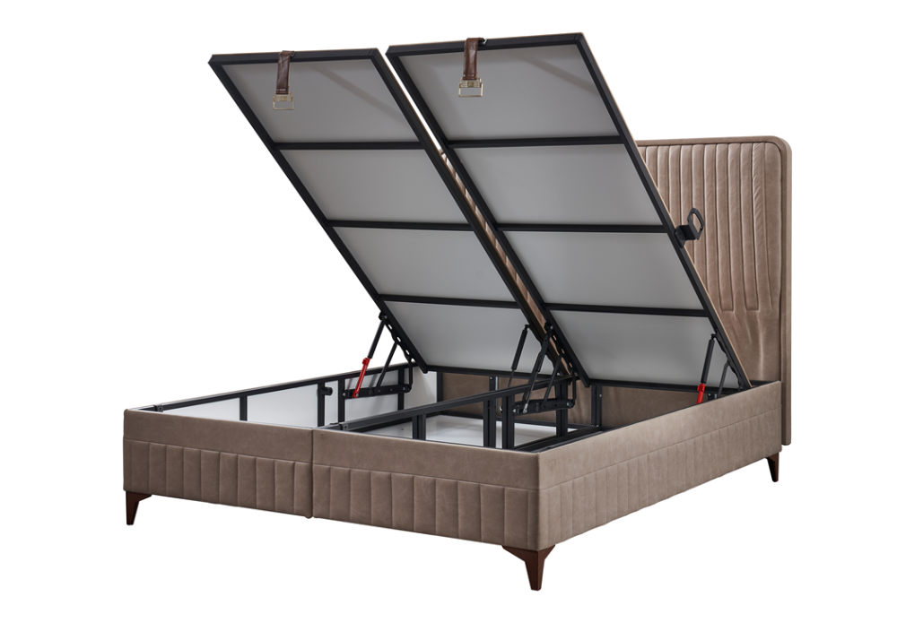 - Базата е снабдена с дъно и нов модел повдигаща система от 1бр / 2бр метална подматрачна рамка с цял ламиниран ПДЧ панел. Рамката е оборудвана с 2бр / 4бр газови амортисьори /2х2/ по 750N, може да се повдига всяка основа по отделно или заедно, има спирачка на механизма, която може да се ползва когато механизма е отворен. На дъното и рамката са монтирани вентилационни капачки. Основата предоставя голямо празно подматрачно пространство, подходящо за съхранение на спални завивки и други вещи.