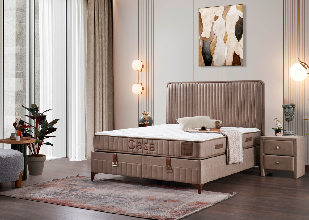 Тапицирано легло Casa е модулно, готов окомплектован вариант, който се състои се от капитонирана табла и капитонирана основа с повдигаща подматрачна система.
