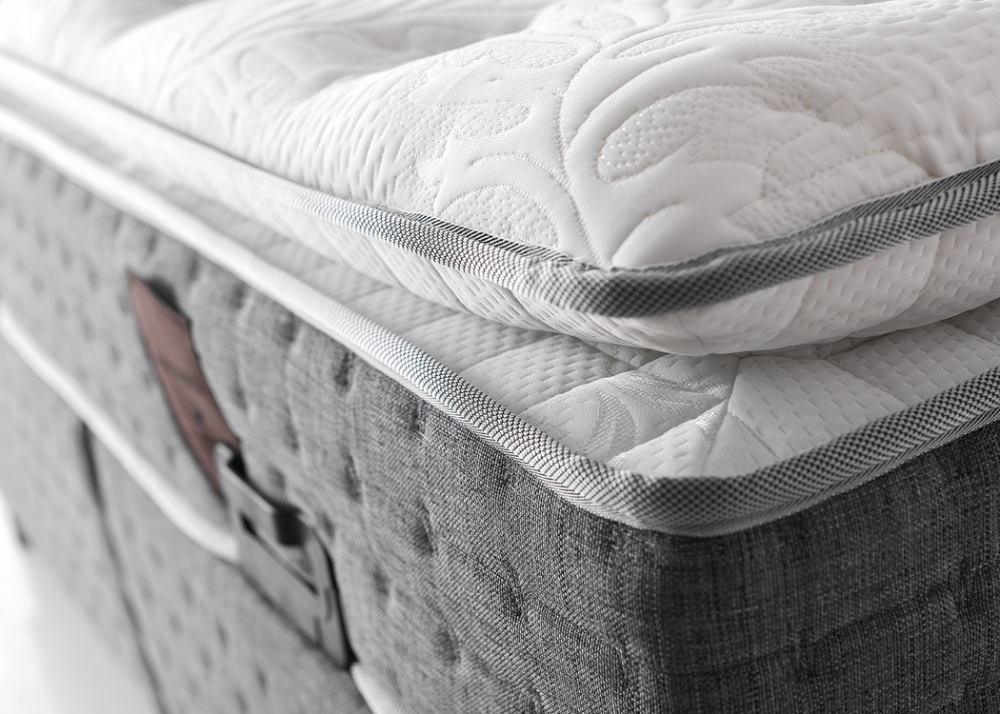 • Матрак с дизайнерска дамаска и прошит топ матрак, антибактериална дамаска, осигуряваща защита срещу акари.