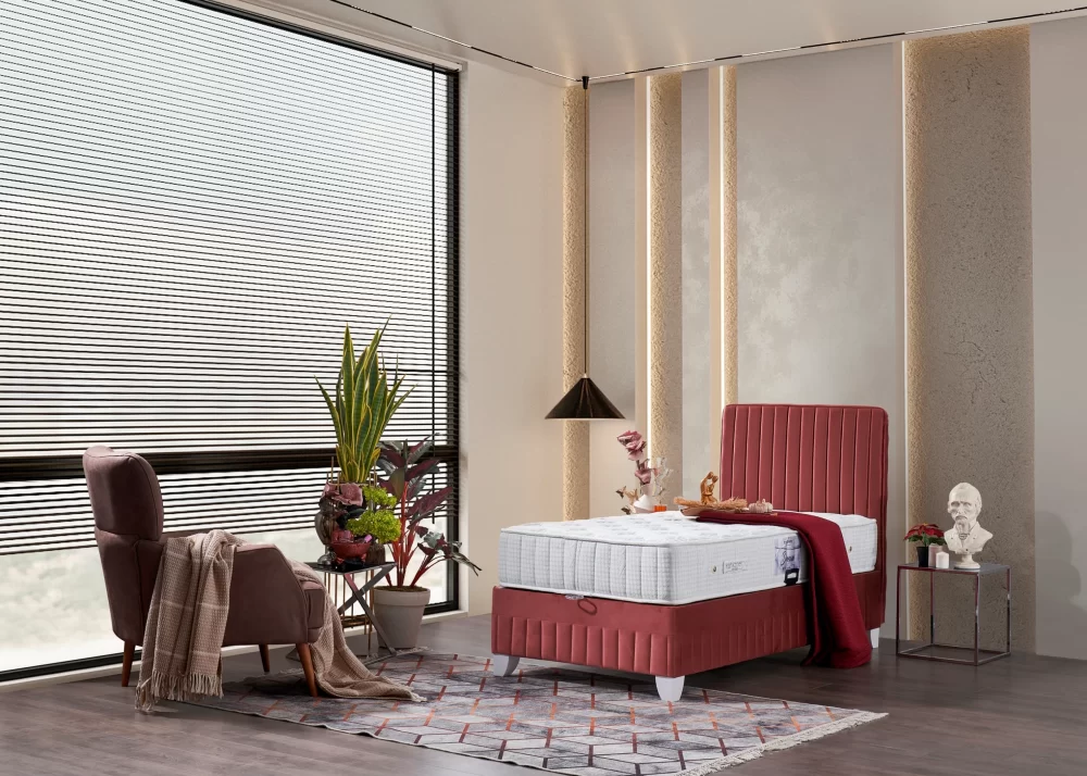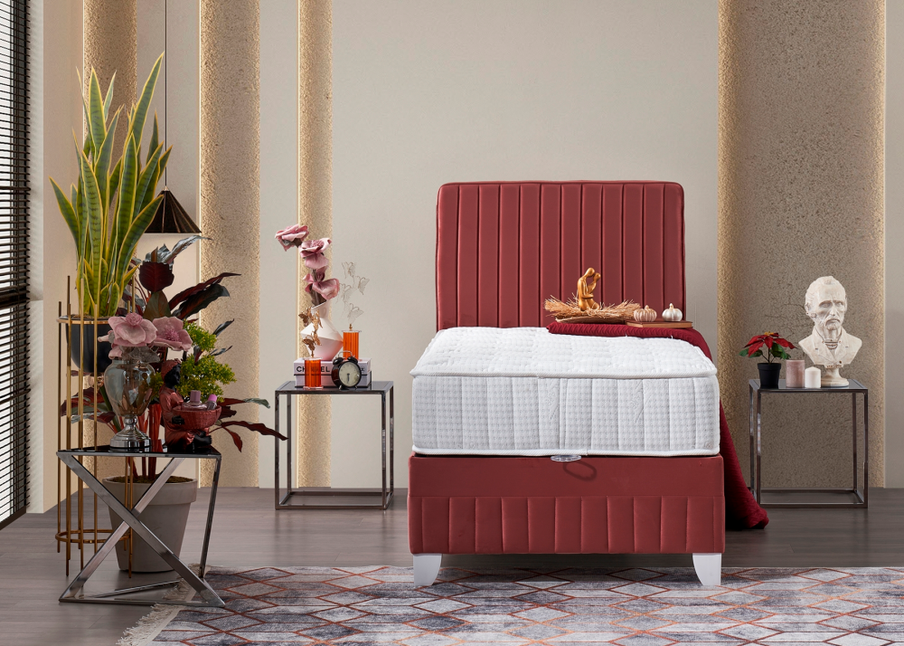 Тапицирано легло Dream в цвят Керемидено Червено, е практично единично легло, с капитонирана табла и капитонирана основа с вградена повдигаща се подматрачна рамка. Таблата и основата на легло Dream са тапицирани с качествена дамаска. Легло Dream се изработва в 2 цвята в по 8 размера, като единично легло и двойно спално легло.