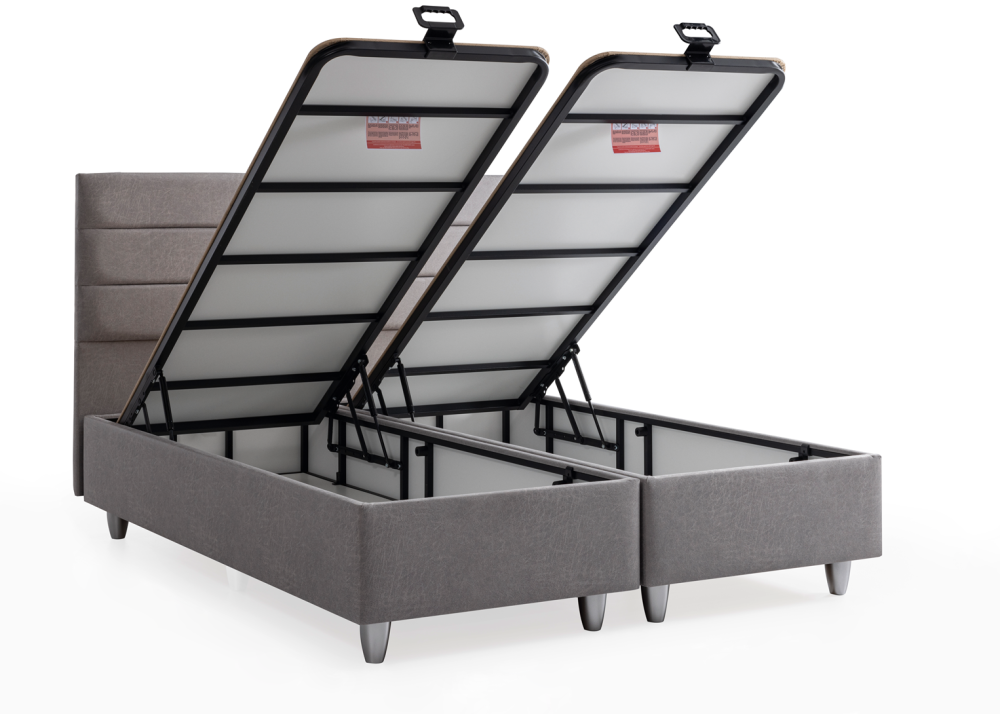 - Основата разполага с вградено дъно и повдигаща се подматрачна система, състояща се от една подматрачна рамка при единичните размери и две подматрачни рамки при двойните размери. Всички рамки са оборудвани с газови амортисьори и спирачка на механизма, която фиксира рамката в отворено положение за по-безопасно и удобно използване. За допълнителна проветривост и защита от влага са монтирани вентилационни капачки.