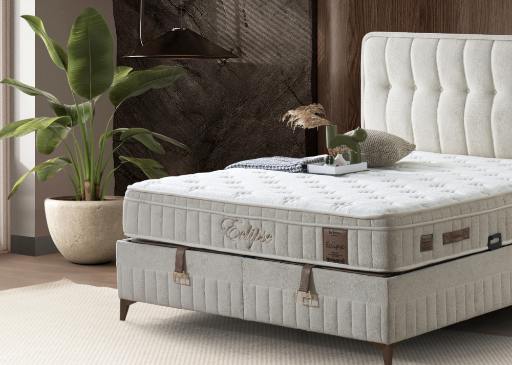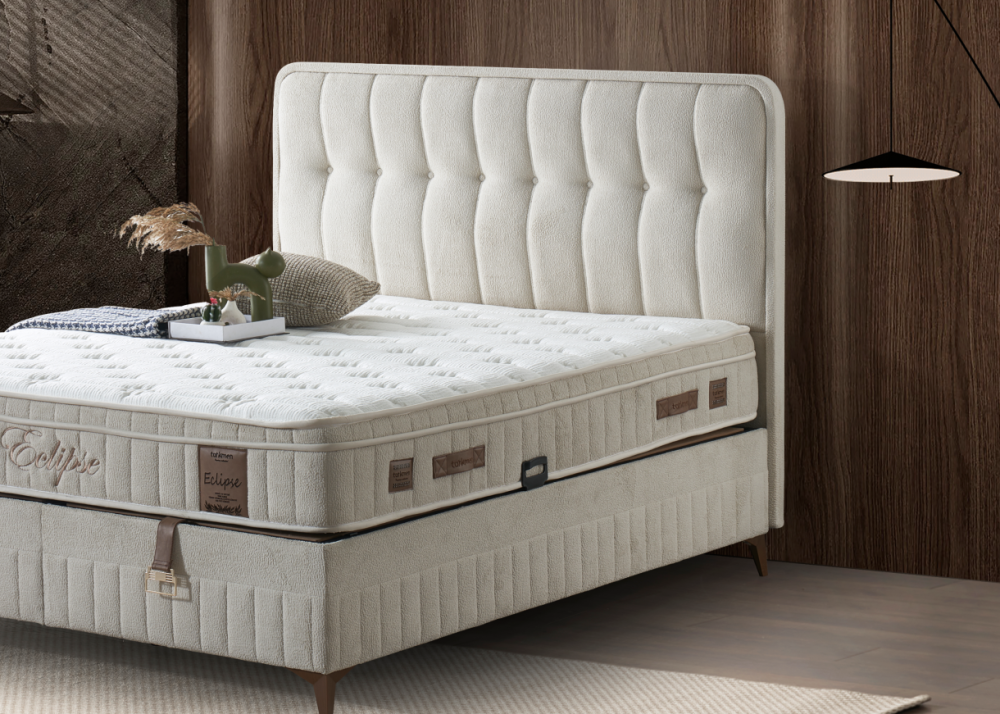 Тапицирано легло Eclipse в комплект с матрак Eclipse и повдигаща се подматрачна рамка. Матрак Eclipse е снабден с прошит топер и е тапициран с дизайнерска дишаща дамаска, която осигурява комфорт и свежест по време на сън.