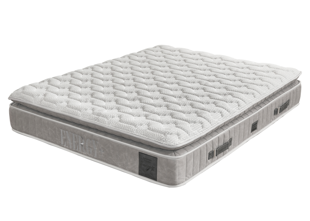Матрак Energy + е с двуслойно пружинно ядро, в комбинация между един ред Pocket пружинна система – Spring System, над нея втори ред от Mini Pocket пружинна система. Добавени са омекотяващи слоеве от висококачествен дунапрен с висока плътност, омекотителна вата, ортопедична пяна, DNS пяна и силиконизирани влакна. Матрак Energy е с балансираща система, която защитава извивките на гръбначния стълб, като поддържа кръста, гърба, главата, врата и областта на коленете. Матрак Energy plus е снабден с прошит топер и специална антистатична дамаска, която неутрализира статичното електричество и осигурявайки спокоен сън. Също така предотвратява изпотяването благодарение на въздушните капсули / канали по цялата повърхност.
