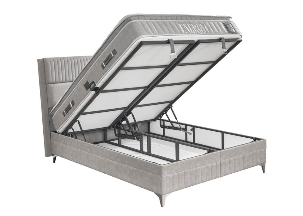 - Базата е снабдена с дъно и нов модел повдигаща система от 1бр / 2бр метална подматрачна рамка с цял ламиниран ПДЧ панел. Рамката е оборудвана с 2бр / 4бр газови амортисьори /2х2/ по 750N, може да се повдига всяка основа по отделно или заедно, има спирачка на механизма, която може да се ползва когато механизма е отворен. На дъното и рамката са монтирани вентилационни капачки. Основата предоставя голямо празно подматрачно пространство, подходящо за съхранение на спални завивки и други вещи.