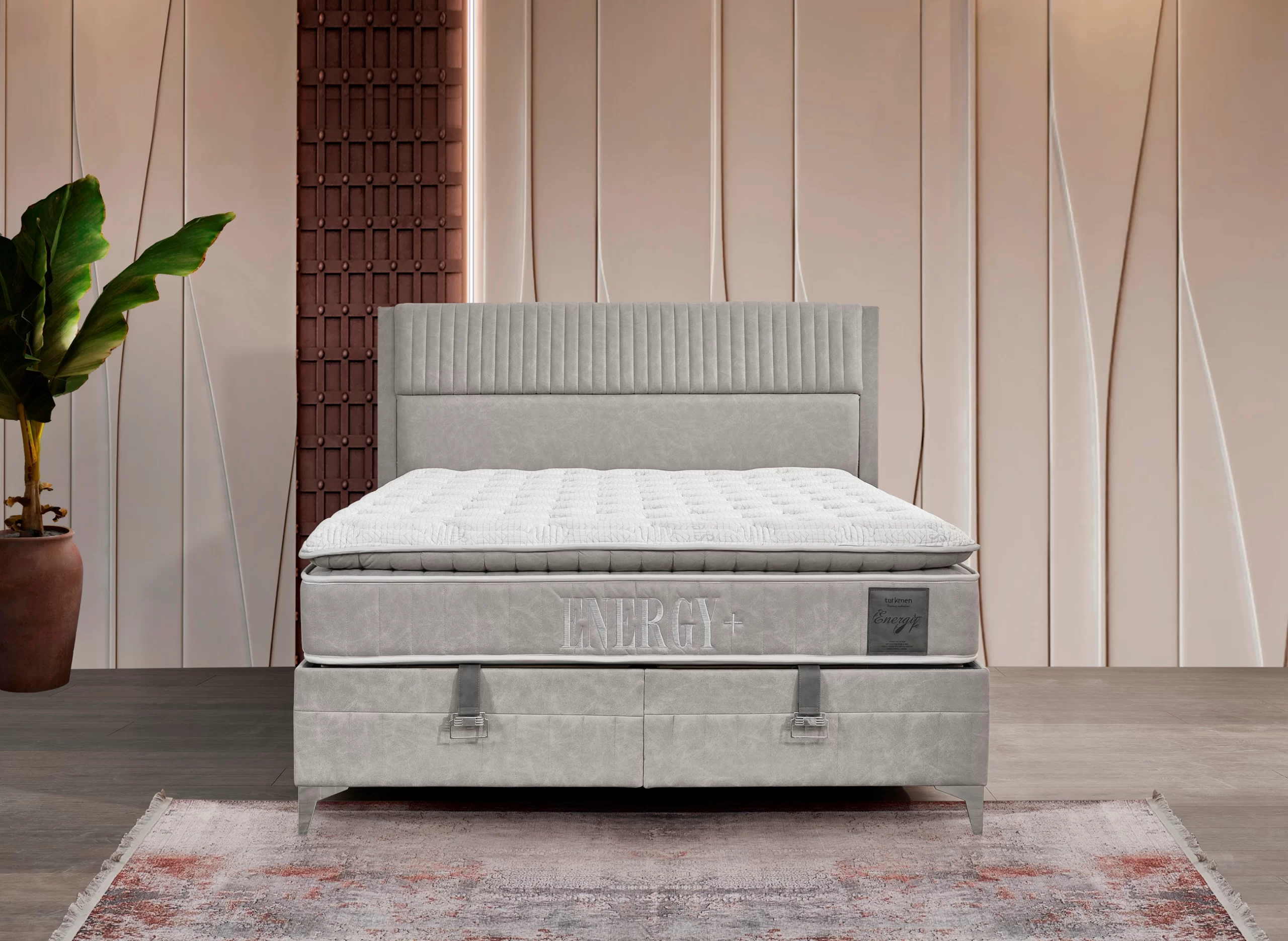 Тапицирано легло Energy plus в комплект с матрак Energy +, който е снабден с прошит топер и специална антистатична дамаска. Тапицирано легло Energy plus е с красива капитонирана табла, капитонирана основа и повдигаща се подматрачна рамка, в елегантен дизайн. В матрак Energyа plus са вложени Pocket и Mini Pocket пружинна система, омекотяващи слоеве от дунапрен с висока плътност, DNS пяна и др. Може да се закупи и без матрака. Тапицирано легло Energy plus се предлага в 10 размера.