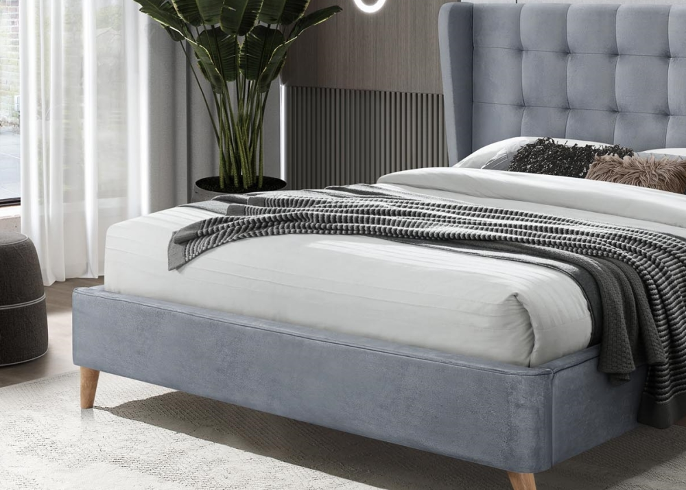 Тапицирано спално легло Estella се изработва от качествени и устойчиви материали. Състои се от масивна дървена рамка, с капитонирана табла, капитонирана основа и устойчиви дървени крачета. Основата и таблата на този модел спалното легло, са тапицирани с качествена и устойчива кадифена дамаска. Снабдено е с дървена подматрачна рамка. Не притежава повдигащ механизъм.