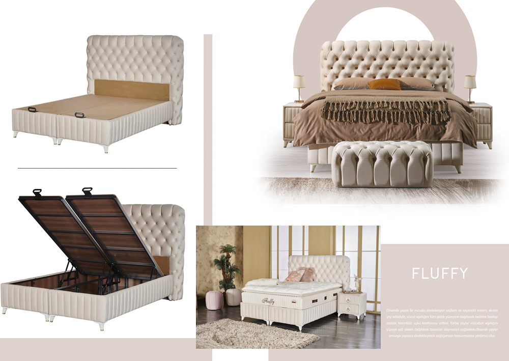 Тапицирано легло Fluffy е част от колекцията на доказалия се Турски производител на мебели и матраци Tutku Yatak.
