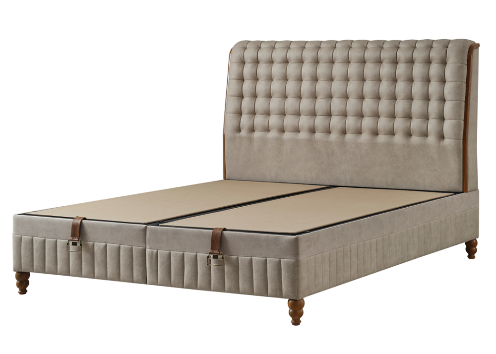 - Основата / база представлява стабилна и устойчива метална конструкция обвита с ламинирано ПДЧ, капитонирана е с качествена дамаска.