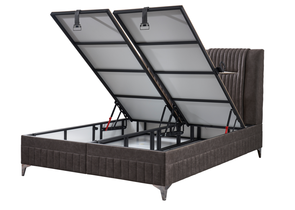 • Базата е снабдена с дъно и нов модел повдигаща система от 2бр метални подматрачни рамки с ламинирани ПДЧ панели. Рамката е оборудвана с 2бр / 4бр газови амортисьори /2х2/ по 750N, може да се повдига всяка основа по отделно или заедно, има спирачка на механизма, която може да се ползва когато механизма е отворен. На дъното и рамката са монтирани вентилационни капачки. Основата предоставя голямо празно подматрачно пространство, подходящо за съхранение на спални завивки и други вещи.