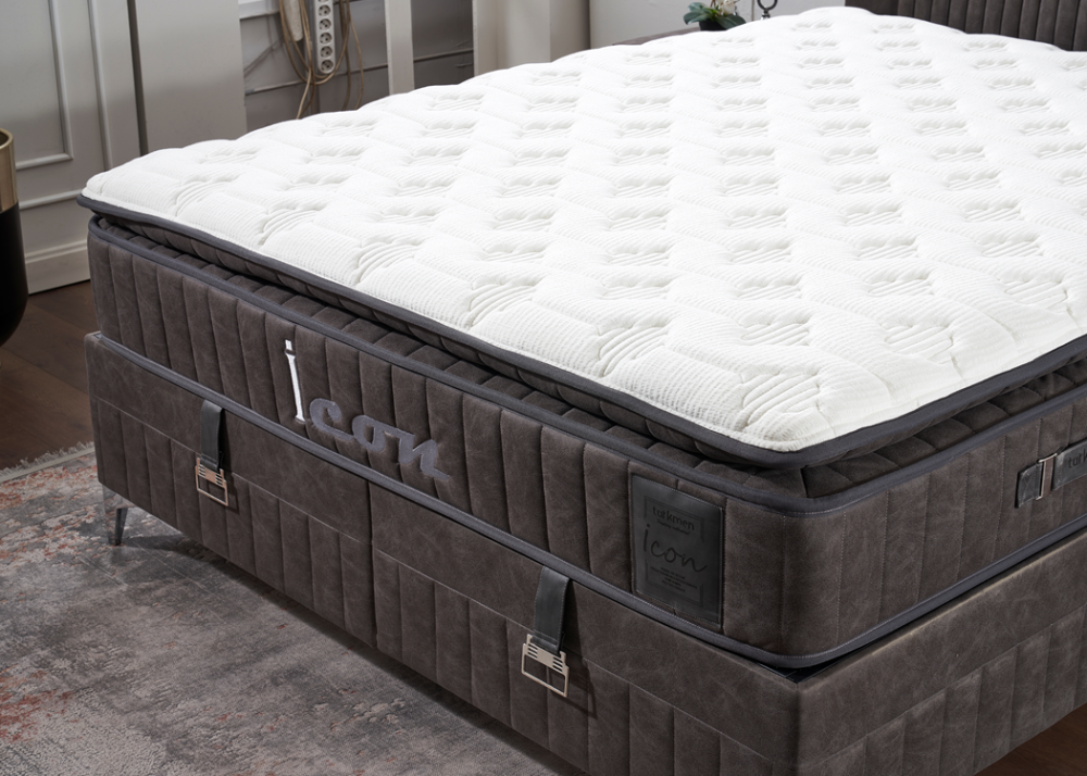 • Матрак Icon е с прошит топер и дизайнерска дамаска от трикотажен плат. Антибактериална дамаска, осигуряваща защита срещу акари.