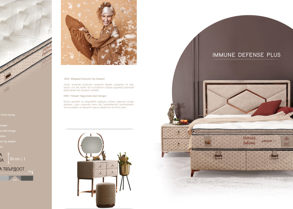Тапицирано легло Immune Defense е част от колекцията на доказалия се Турски производител на мебели и матраци Tutku Yatak.