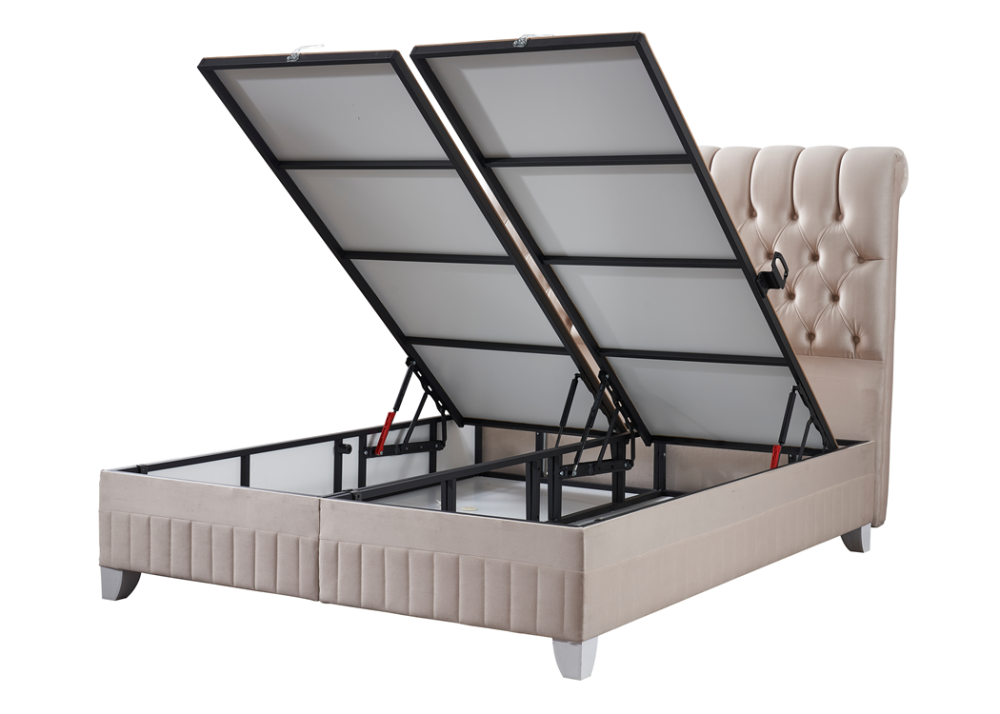 - Базата е снабдена с дъно и нов модел повдигаща система от 1бр / 2бр метална подматрачна рамка с цял ламиниран ПДЧ панел. Рамката е оборудвана с 2бр / 4бр газови амортисьори /2х2/ по 750N, може да се повдига всяка основа по отделно или заедно, има спирачка на механизма, която може да се ползва когато механизма е отворен. На дъното и рамката са монтирани вентилационни капачки. Основата предоставя голямо празно подматрачно пространство, подходящо за съхранение на спални завивки и други вещи.