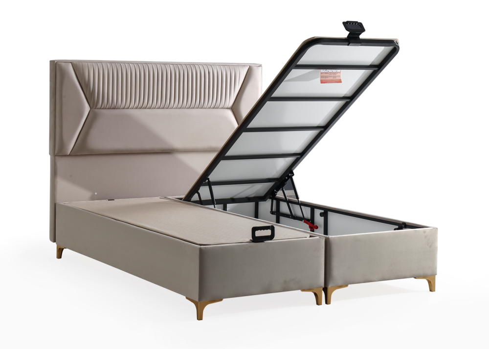 - Основата разполага с вградено дъно и повдигаща се подматрачна система, състояща се от две подматрачни рамки, оборудвани с газови амортисьори и спирачка на механизма, която фиксира рамката в отворено положение за безопасно и удобно използване. За проветривост и защита от влага са монтирани вентилационни капачки.