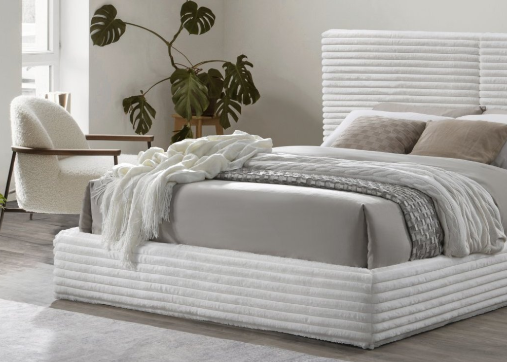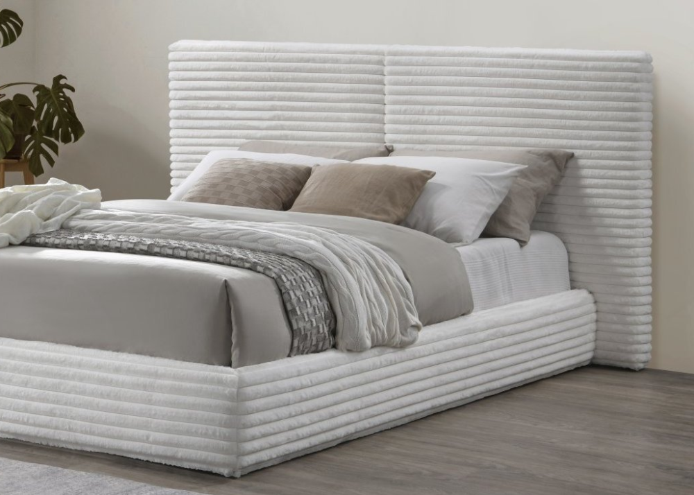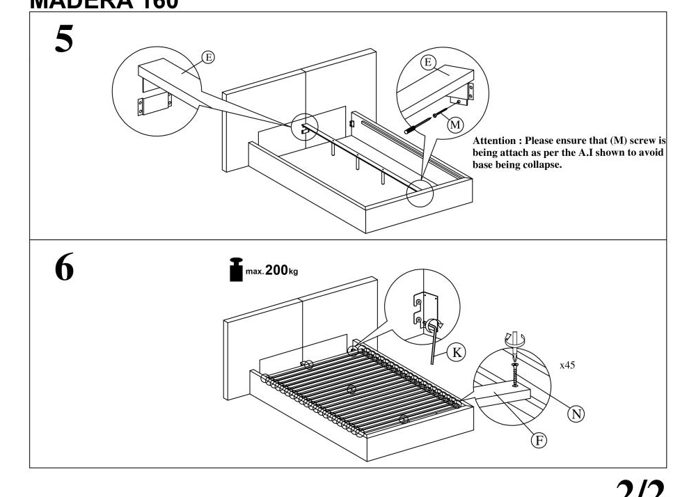 Тапицирано спално легло Madera съчетава модерен стил, устойчивост и комфорт. Таблата и основата са изработени от масивна дървесина, тапицирани с висококачествен нежен тъкан плат. Леглото е снабдено с дървена подматрачна рамка и устойчиви крачета, без повдигащ механизъм.