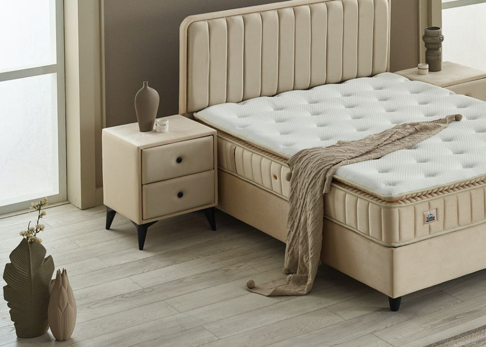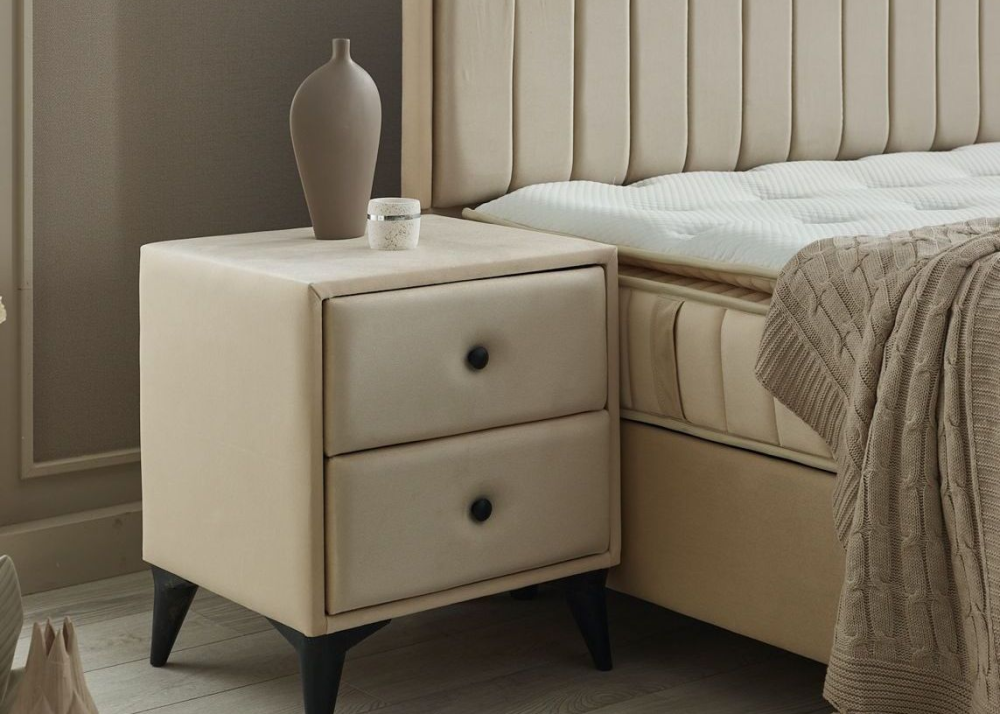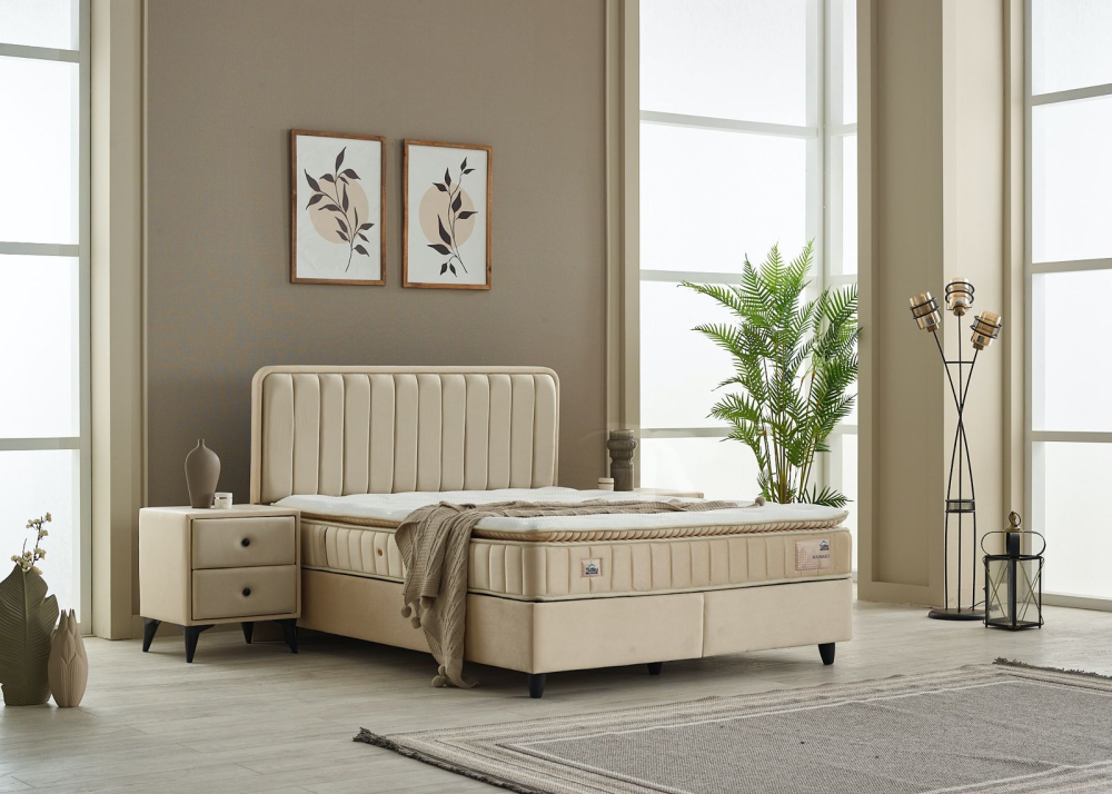 Тапицирано легло Marmaris в цвят Бежов крем, в комплект с комфортен матрак Marmaris и повдигаща се подматрачна рамка. Легло Marmaris се предлага в два цвята – Бежов крем и Антрацит, без допълнително оскъпяване.