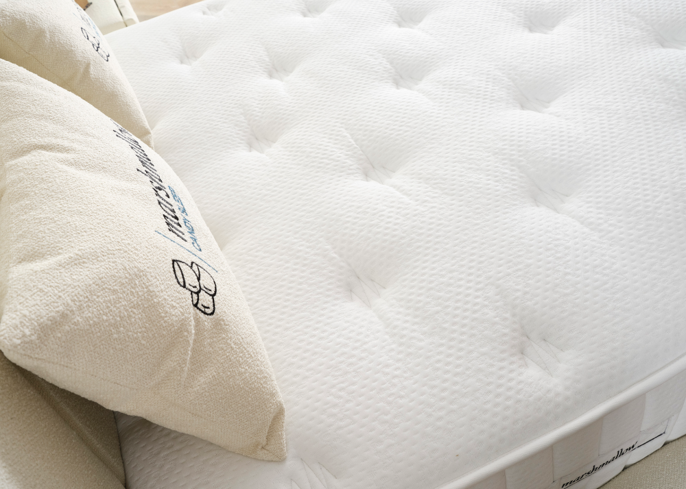 Матрак Marshmallow предлага прецизно балансирана многослойна конструкция, изработена от висококачествени материали, която комбинира иновативни технологии, ортопедична поддръжка и усещане за луксозна мекота. Облечен е с капитонирана антибактериална дамаска с нежна текстура и копринен ефект, комбинирана с вентилиращи 3D мрежести ленти, които спомагат за постоянна циркулация на въздуха и оптимална температура по време на сън. Дамаската е устойчива на износване и допринася за усещане за чистота и свежест през цялата нощ.