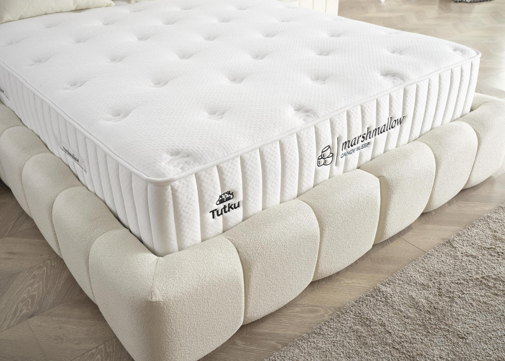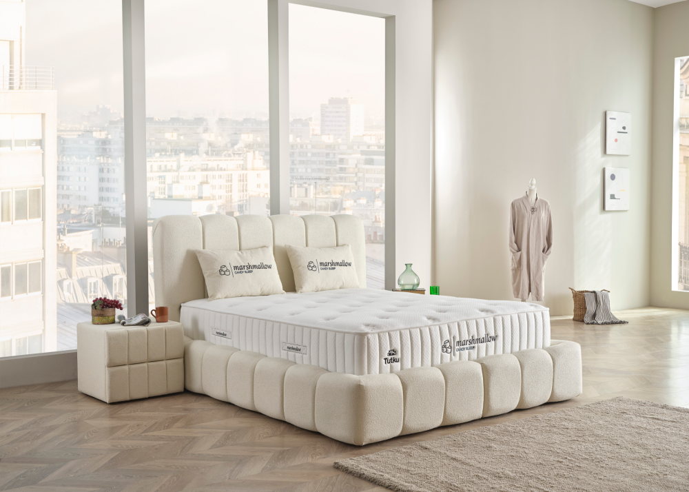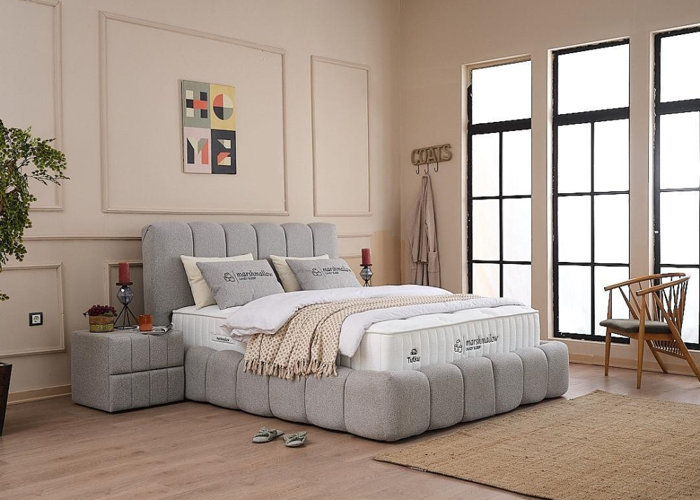 Тапицирано легло Marshmallow се предлага в комплект с повдигаща се подматрачна рамка и луксозен матрак Marshmallow. Моделът е наличен в два стилни цвята - Бял крем и Светло сиво, без допълнително оскъпяване.