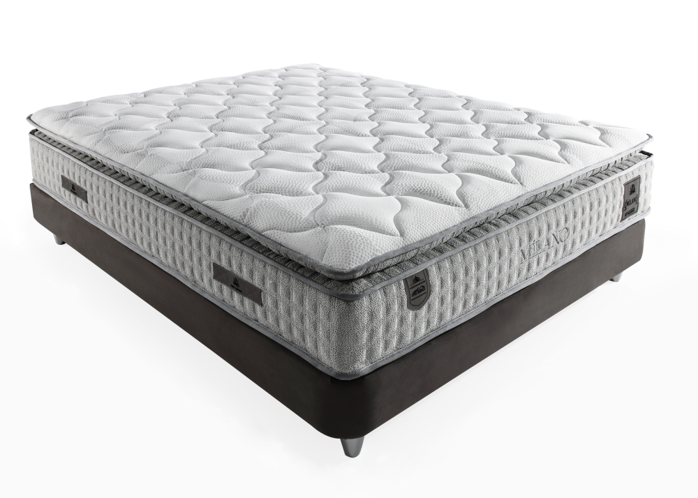 - Матрак Milano е снабден комфортен прошит топ матрак и дишаща дизайнерска дамаска Knitted Fabrik.