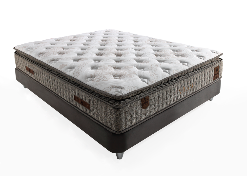 - Матрак Milano е снабден комфортен прошит топ матрак и дишаща дизайнерска дамаска Knitted Fabrik.