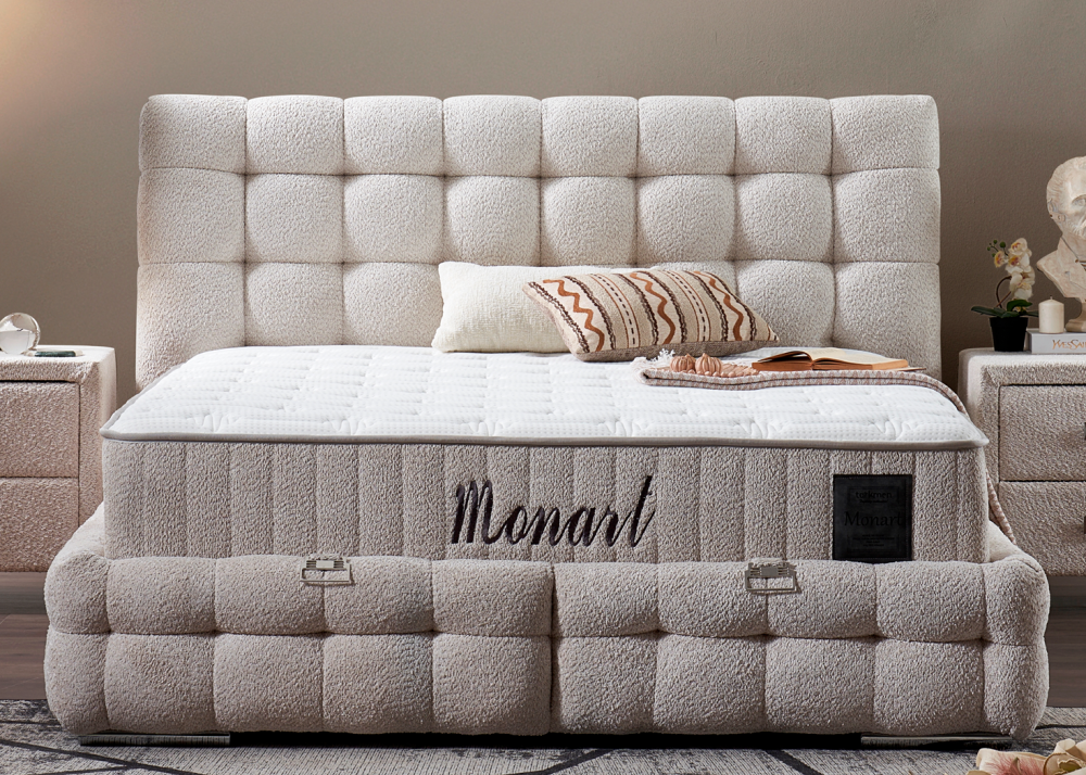 Тапицирано легло Monart в комплект с матрак Monart и повдигаща се подматрачна рамка. Тапицирано легло Monart е капитонирано с висок клас плюшена дамаска, в луксозен отличаващ се дизайн.