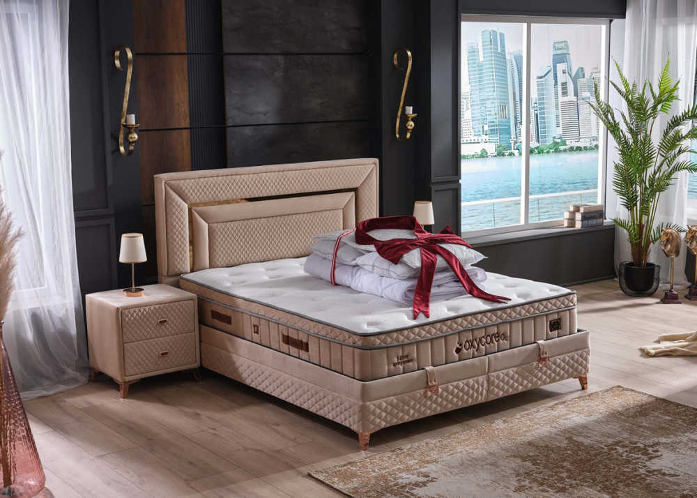 Тапицирано легло Oxycore е част от колекцията на доказалия се Турски производител на мебели и матраци Tutku Yatak.