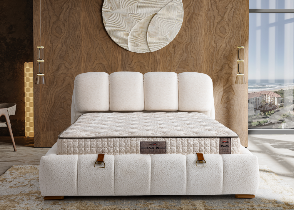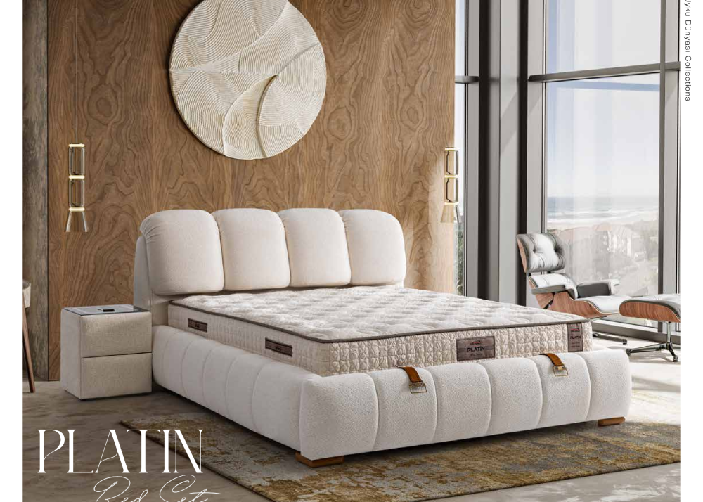 Тапицираното спално легло Platin Uyku Dünyasi разполага с луксозна капитонирана табла и тапицирана основа, в която са вградени елегантни кожени дръжки, улесняващи повдигането на подматрачните рамки. Основата е снабдена с вградена повдигаща се подматрачна система с газови амортисьори, която осигурява просторно и практично място за съхранение на завивки, възглавници, спално бельо и други вещи.