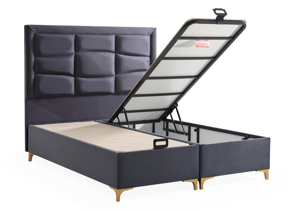 - Основата разполага с вградено дъно и повдигаща се подматрачна система, състояща се от една подматрачна рамка при единичните размери и две подматрачни рамки при двойните размери. Всички рамки са оборудвани с газови амортисьори и спирачка на механизма, която фиксира рамката в отворено положение за по-безопасно и удобно използване. За допълнителна проветривост и защита от влага са монтирани вентилационни капачки.